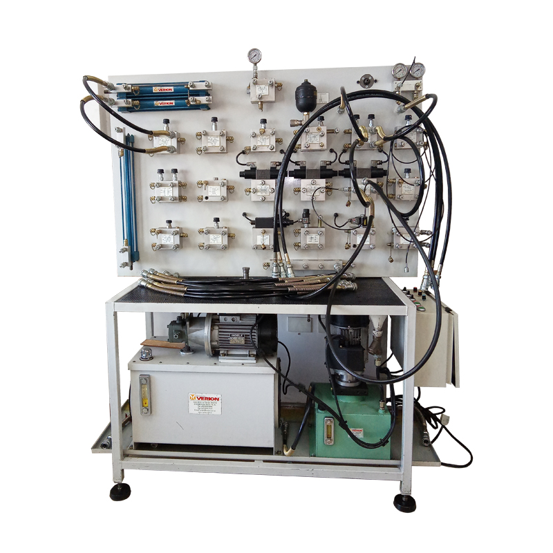 VERION diseña y fabrica bancos de entrenamiento para aprendizaje. Se pueden armar y analizar distintos diseños de circuitos hidráulicos.