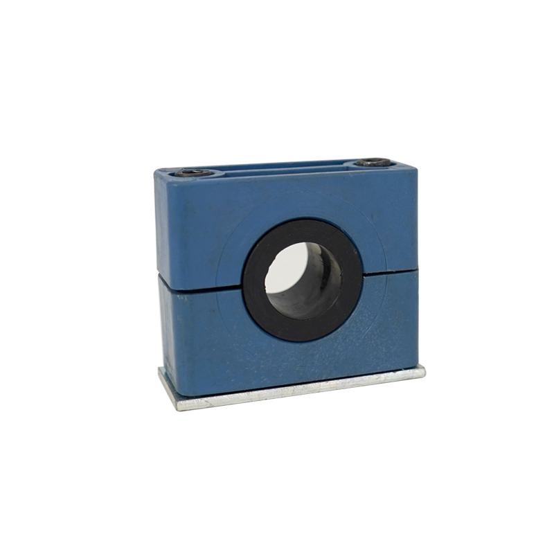 Soporte con buje de goma para absorber vibraciones de mangueras o tuberías.