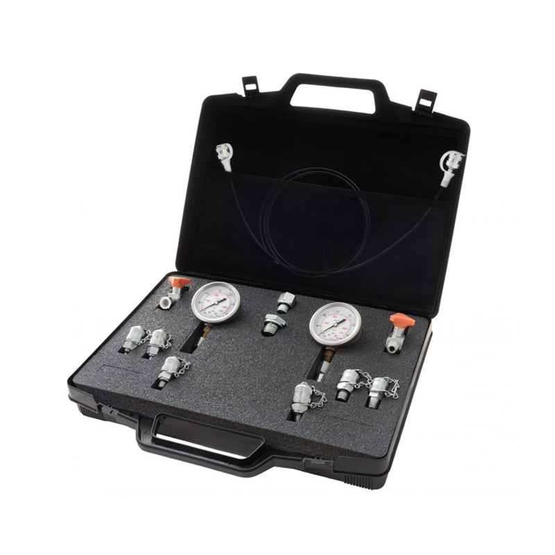 Valija de medición analógica con varios puntos de medición y mangueras.